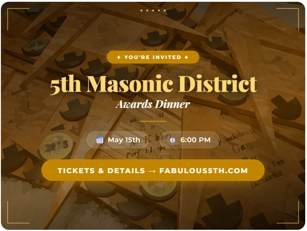 Covering Fulton, Williams, Defiance, and Henry Counties in Northwest Ohio, the Fabulous Fifth Masonic District exists for the benefit of the blue lodges in the district, their members, and guests.