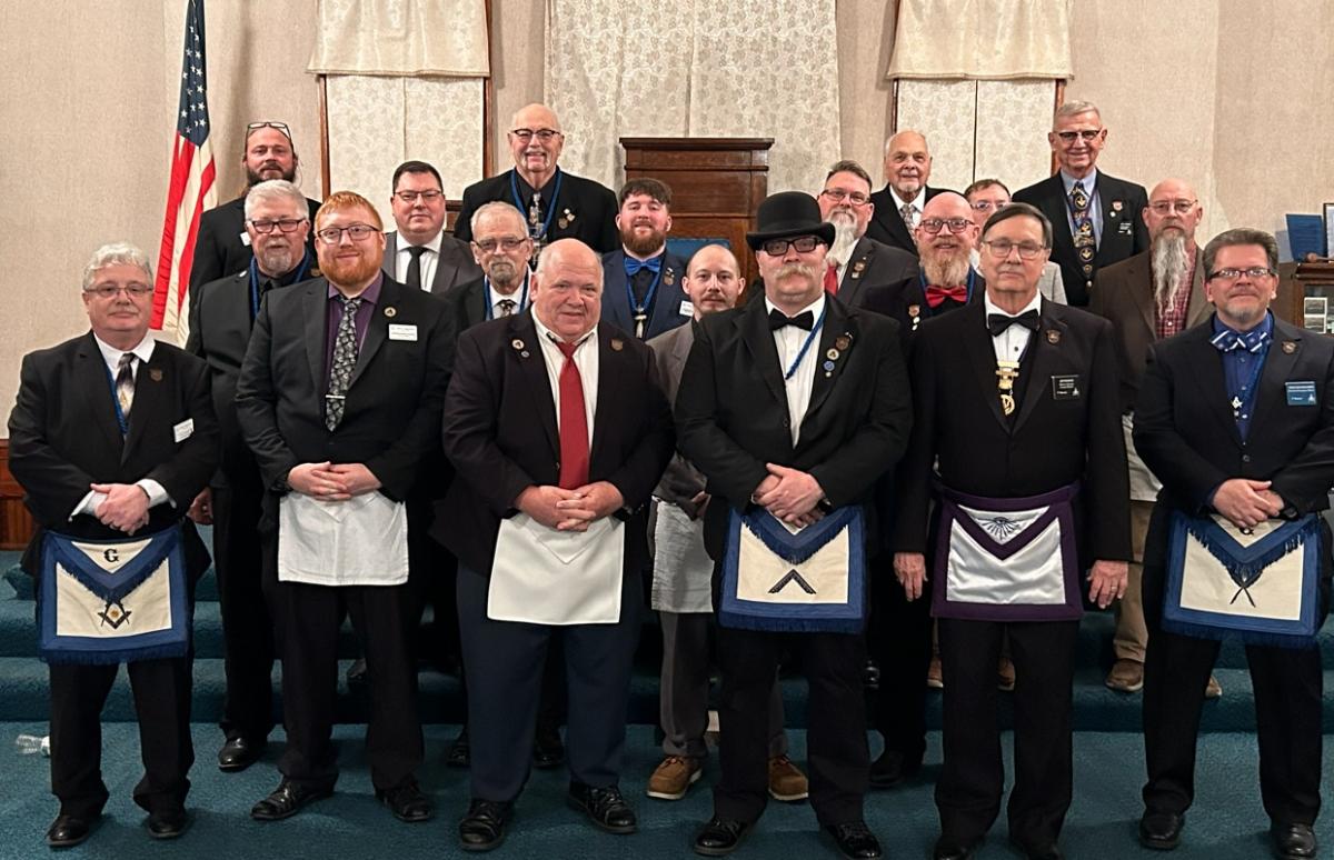 Despite the cold weather, 38 hardy Masons made the trip to Delta for Fulton Lodge and the first inspection of the season. After a meal including their fabled bologna sandwiches, Fulton Lodge exemplified the Master Mason degree for brother Mark Nightingale. A highlight of the lecture was each of the emblems on the Master's Carpet explained by an individual Brother of Fulton Lodge.