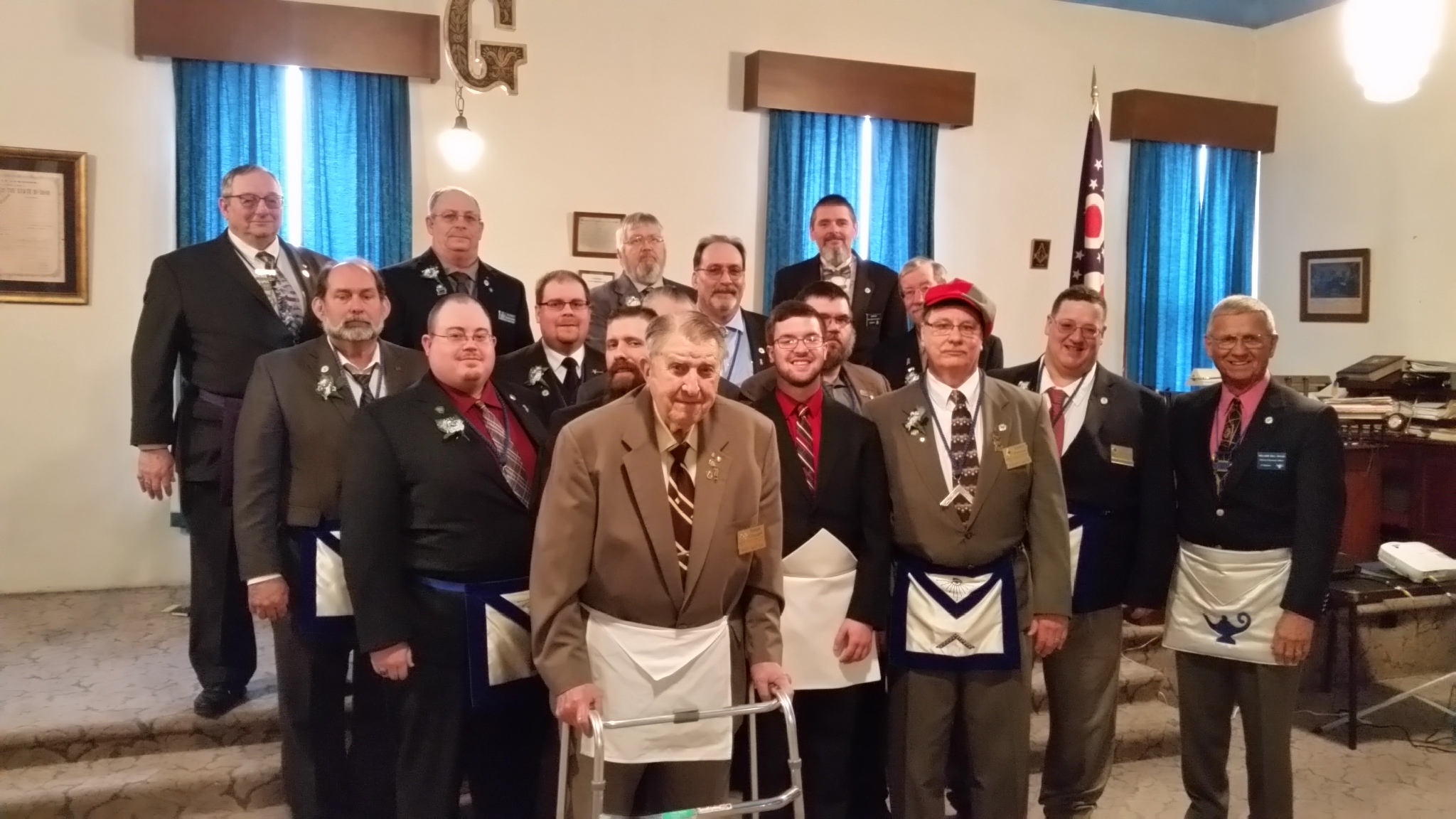 WB Kenith Snyder and has officers put on an amazingly precise EA degree on Friday night at Bryan #215. There were 16 Brothers from Bryan present with 8 past masters. Combined with 43 visiting brothers for 59 in attendance. Napoleon had 8 traveling brothers and holds on to the Traveling Trophy. With only 3 inspections remaining, the next will be Napoleon #256 on Friday March 18 at 7pm in EA. Come early for the Jiggs Dinner at 6pm (suggested donation of $8).