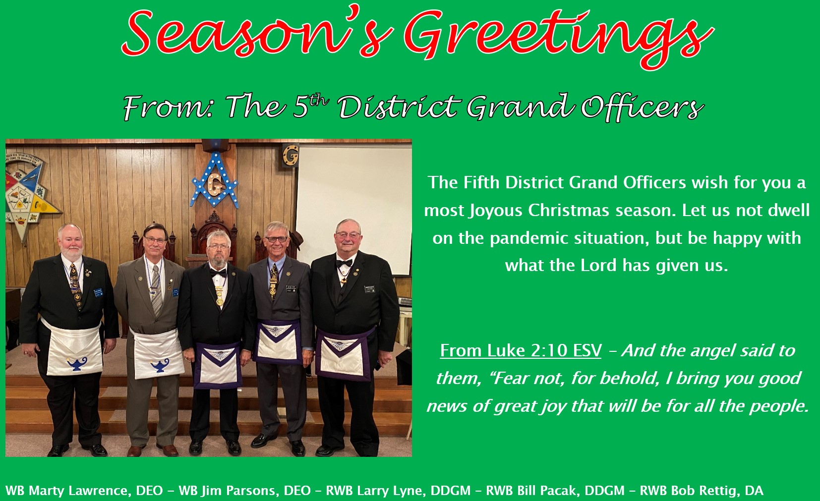Brother Barber was raised a Master Mason on April 24th, 1974 in Wauseon Lodge No. 349 and has been coronated a 33rd Degree Mason by the Valley of Toledo, AASR. Though he has never served as a progressive line officer with-in Wauseon Lodge, beginning in 1985, James agreed to accept the position of Treasurer, a position he has held ever since. For the 34 years since, he has been one of the best attending and most supportive of all the brethren to have come and gone during that time. He has donated his time outside of meetings to serve as Master Craftsman for new candidates and has maintained the lodge grounds longer than any of us can remember.