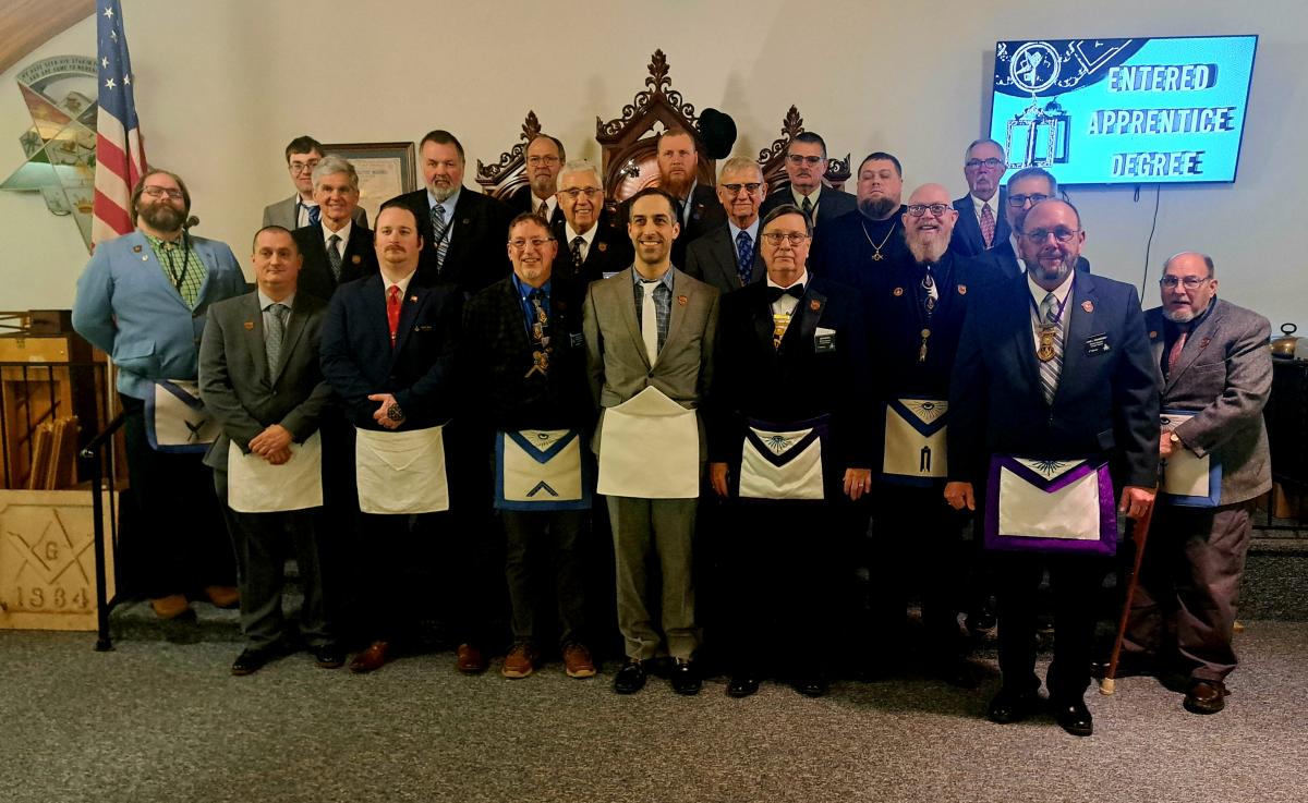 WB Scott Wade got to initiate his son into Masonry at Hicksville Lodge 478 Free and Accepted Masons of Ohio inspection on 02/13/26. This was the Districts best attended inspection so far this year. Fine degree work was delivered and Fulton lodge takes the traveling trophy again with 18! We look forward to seeing you all at Edon Lodge #474 F&AM EA inspection this coming Friday!