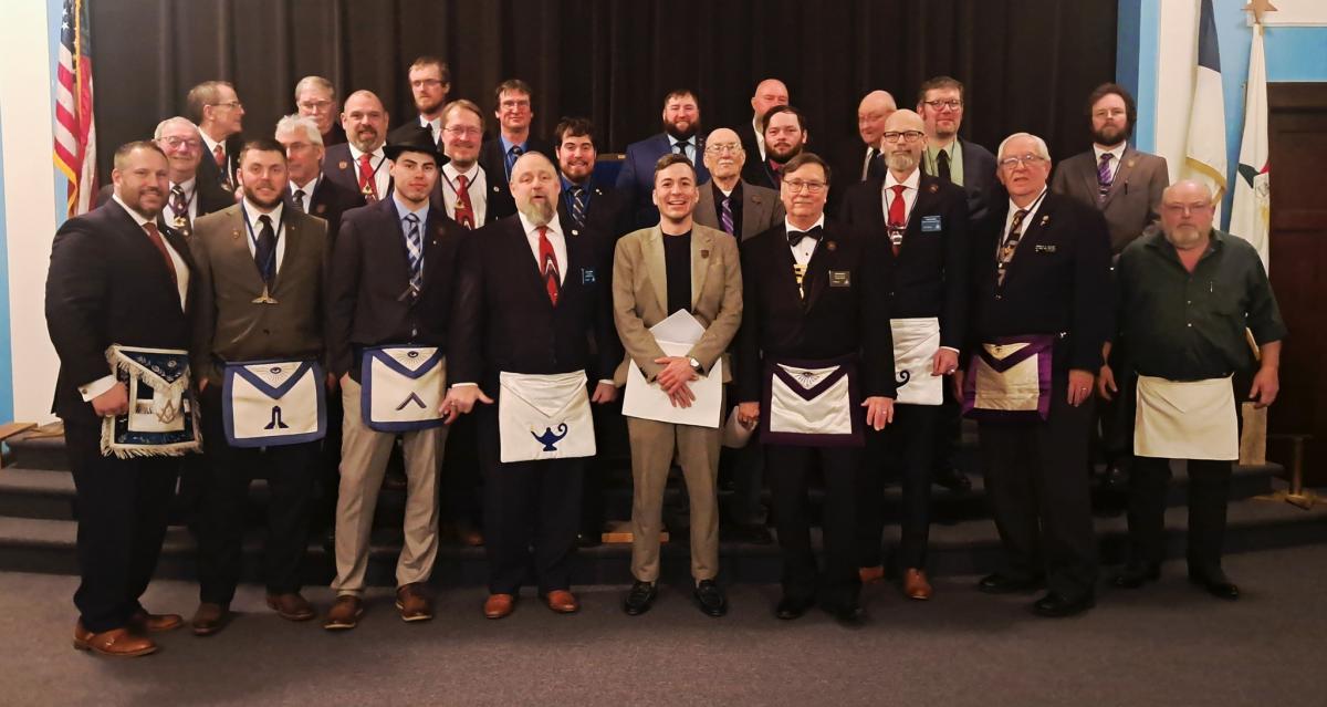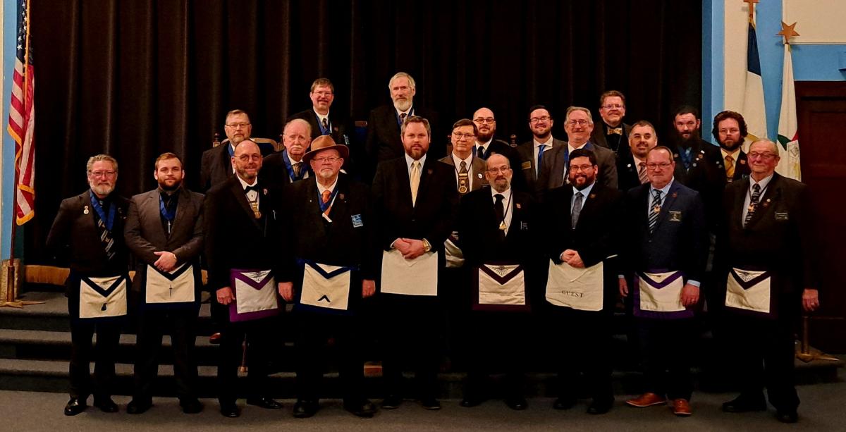 Despite the cold weather, 38 hardy Masons made the trip to Delta for Fulton Lodge and the first inspection of the season. After a meal including their fabled bologna sandwiches, Fulton Lodge exemplified the Master Mason degree for brother Mark Nightingale. A highlight of the lecture was each of the emblems on the Master's Carpet explained by an individual Brother of Fulton Lodge.