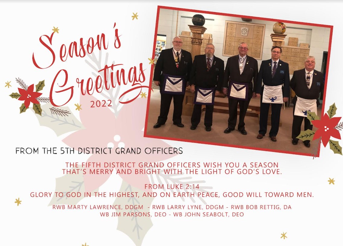 Please communicate to your lodge members that the Fifth Masonic District Annual meeting will be held at Wauseon Lodge, at 9 am, on Saturday, September 17. The purpose of this communication is a review of the past year's events, the budget for the 2023 year, the election of district officers, and communication of events for the coming calendar year.